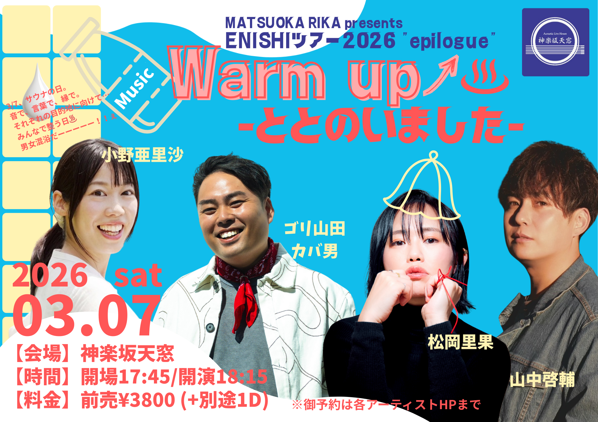 何度も、こちらのホールでは単独公演をさせていただいており、ご縁のある会場とのこともあり、凄く嬉しい松岡です。テレビ化もされている有名脚本の舞台。舞台音楽として使っていただくのは初めてなので、本番が楽しみです。良ければお芝居がお好きな方は足を運ばれてみてくださいね♪